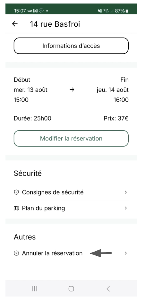 To cancel a booking, you can do it directly in the app using the “Cancel booking” button, available in the “Booking” tab. Select the relevant booking and scroll to the bottom of the screen to click on “Cancel booking" :