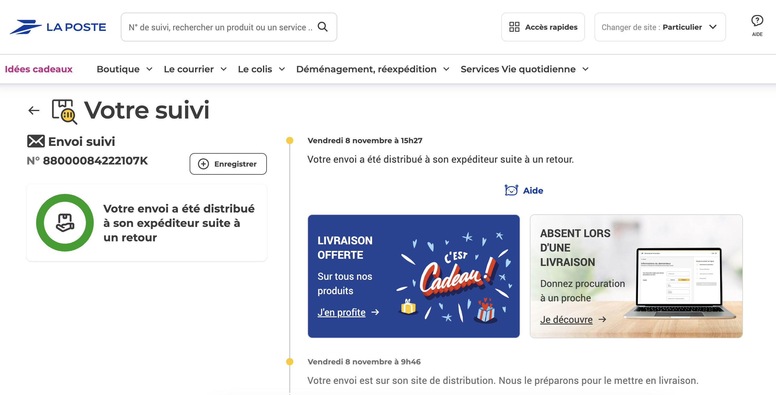 By clicking on each link, you can view the detailed tracking information from La Poste :
