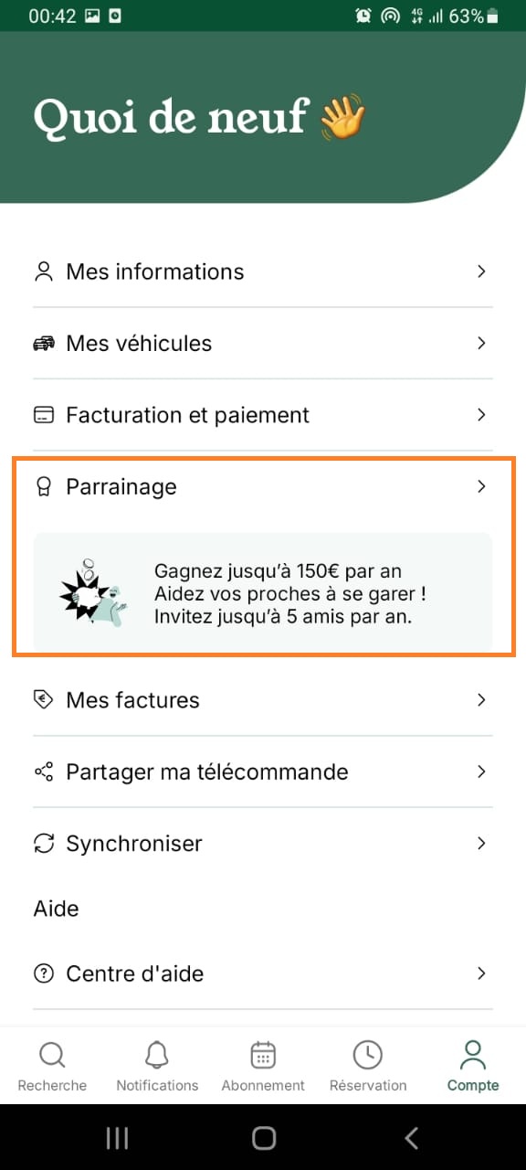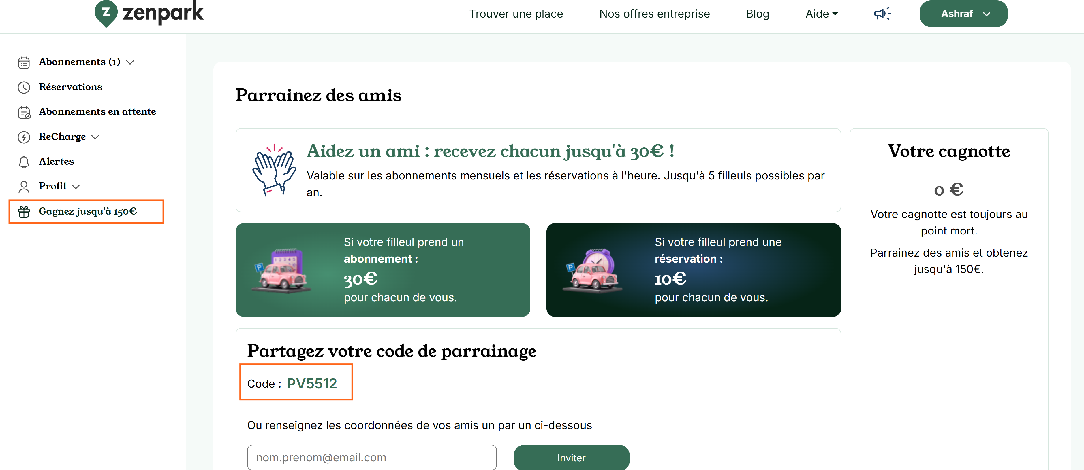 Ce code est disponible dans votre application Zenpark, rubrique « Parrainage ».