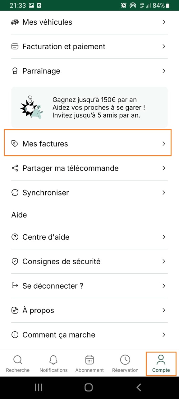 Rendez-vous dans l'onglet Compte puis Mes factures