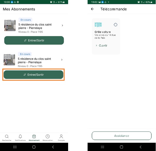 💡 Pendant la période où vous disposez des deux parkings, vous pouvez basculer d'une télécommande à une autre depuis votre application en vous rendant dans l'onglet "Abonnement" et en sélectionnant le bon parking.