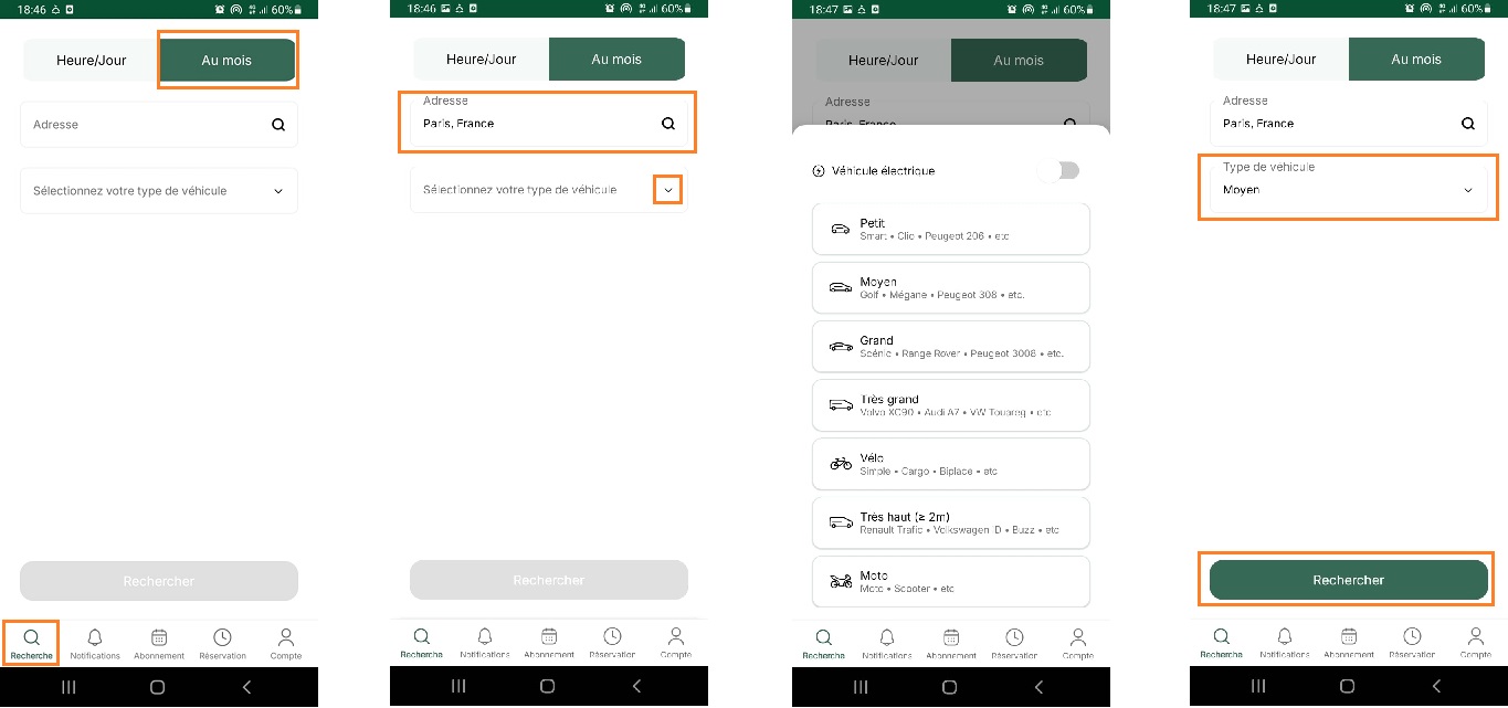 - Le type de votre véhicule (deux roues, petit, moyen, grand, utilitaire).