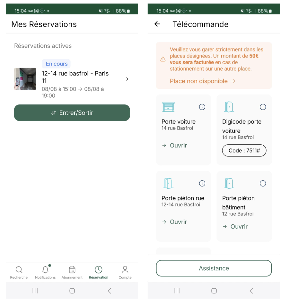 En cliquant dessus, vous ĂȘtes redirigĂ©(e) vers une page vous permettant dâouvrir les accĂšs du parking Ă distance đ