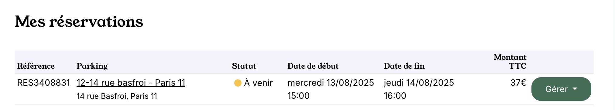 Cliquez sur « Gérer », puis sur « Accéder au parking »