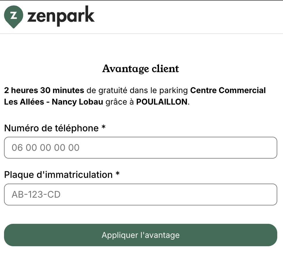 Si vous disposez d'un accord spécial avec le propriétaire de votre parking, il est possible d'étendre la gratuité offerte sur le parking pour vos clients.